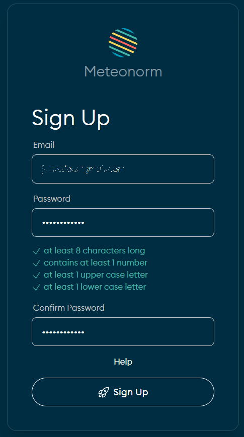 This step is also completed during the checkout in the shop. If you don't have a Portal Admin account yet, sign up here: https://go.meteotest.ch/web/signup